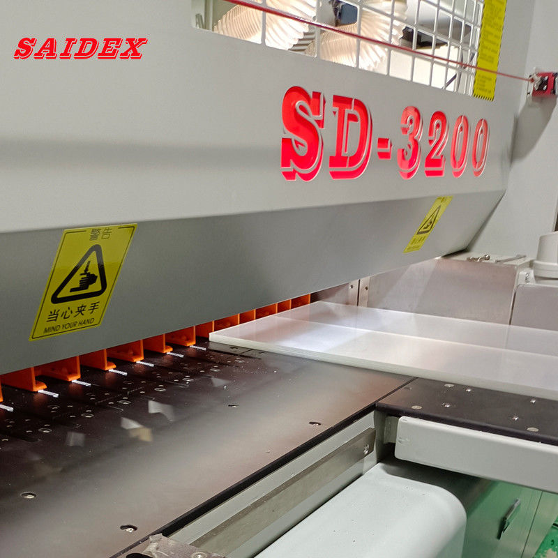 แร็คและปีกนกที่มีความแม่นยำสูง การเคลื่อนที่ที่มั่นคง รับประกันการตัดความแม่นยำ. 2). ตำแหน่งดึงกลับของตู้เลื่อยควบคุมโดยอัตโนมัติตามความยาวการตัดครั้งถัดไปซึ่งช่วยลดเวลาการเคลื่อนที่ที่ไม่ได้ใช้และปรับปรุงประสิทธิภาพอย่างมาก